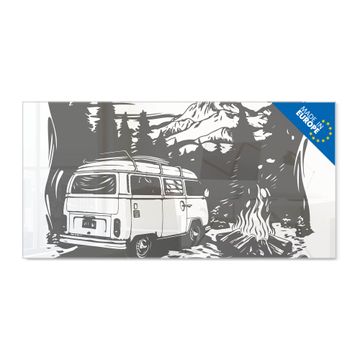 Glas Magnettafel im Querformat Motiv Abenteuerliche Campingszene