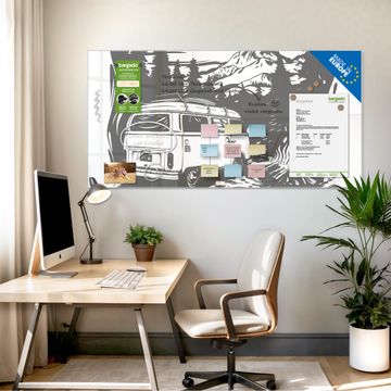 Die banjado Glas Magnettafel mit dem Motiv Motiv Abenteuerliche Campingszene verbindet Funktionalität mit Stil. Sie ersetzt das Zettelchaos durch klare Strukturen und bringt dabei eine warme, natürliche Atmosphäre in Ihr Zuhause. Ob im Büro, in der Küche oder im Eingangsbereich - dieses Design-Board zieht Blicke an und sorgt für Ordnung mit Charakter.