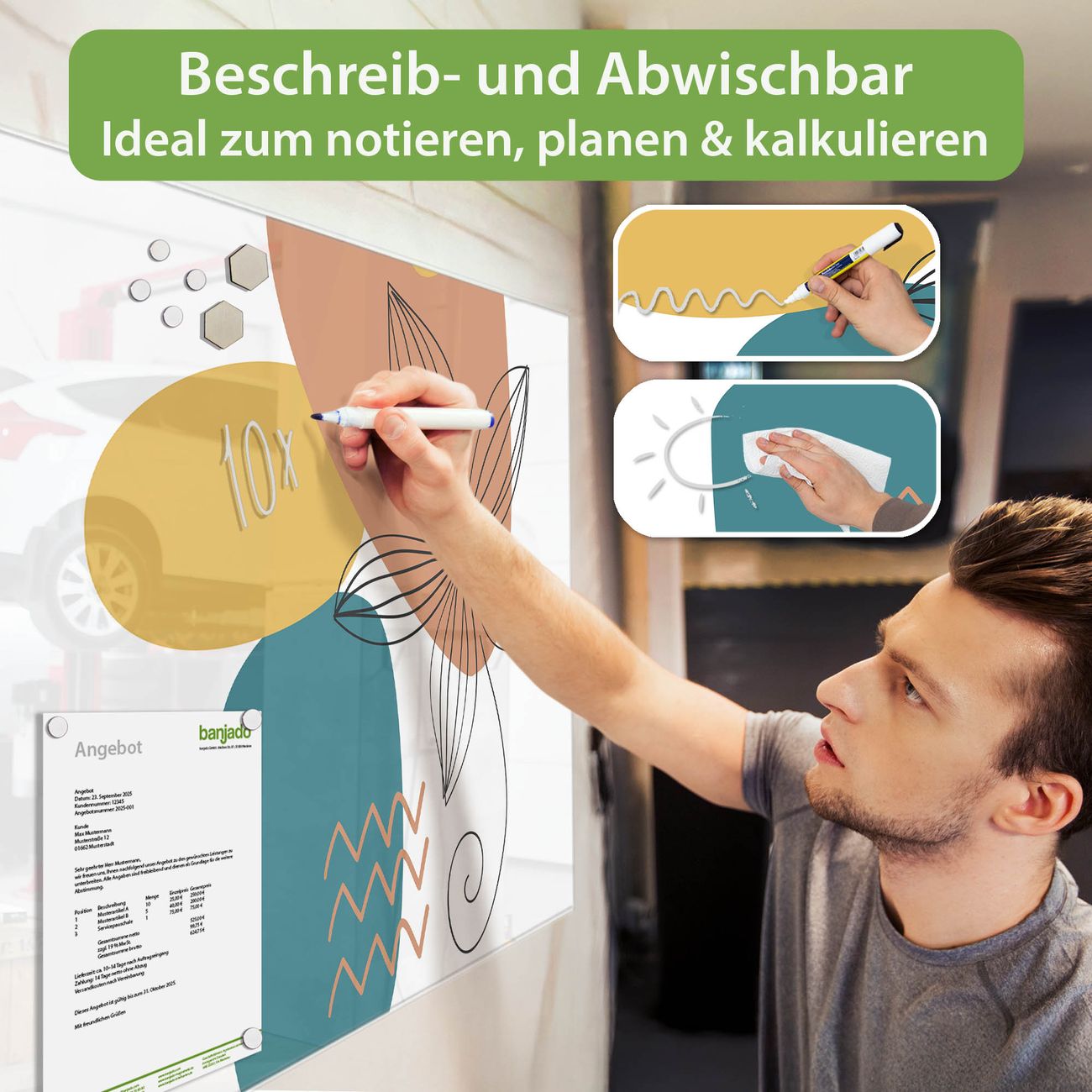 Jede Glas Magnettafel wird in unserer Werkstatt von Hand gefertigt und sorgfältig geprüft. So erhalten Sie ein echtes Qualitätsprodukt, das Funktion und Ästhetik perfekt vereint.?? Warum banjado?