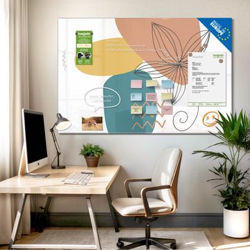 Die banjado Glas Magnettafel mit dem Motiv Motiv Abstrakte Blumenkontur verbindet Funktionalität mit Stil. Sie ersetzt das Zettelchaos durch klare Strukturen und bringt dabei eine warme, natürliche Atmosphäre in Ihr Zuhause. Ob im Büro, in der Küche oder im Eingangsbereich - dieses Design-Board zieht Blicke an und sorgt für Ordnung mit Charakter.