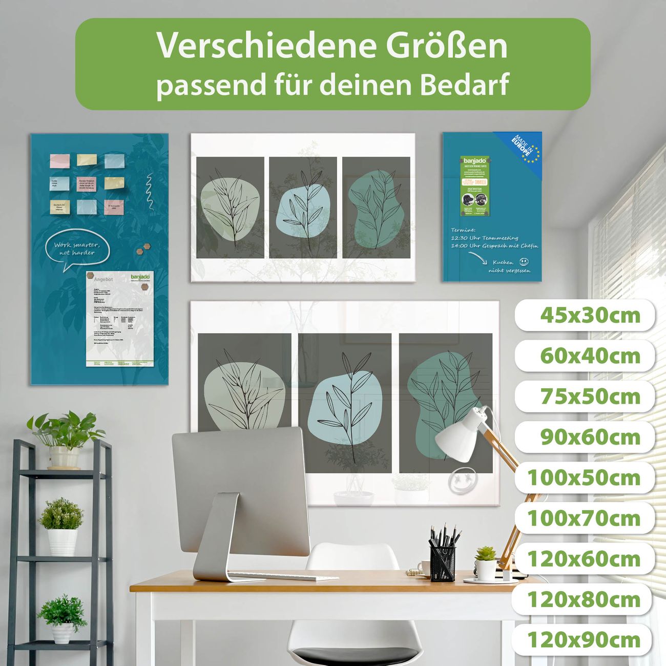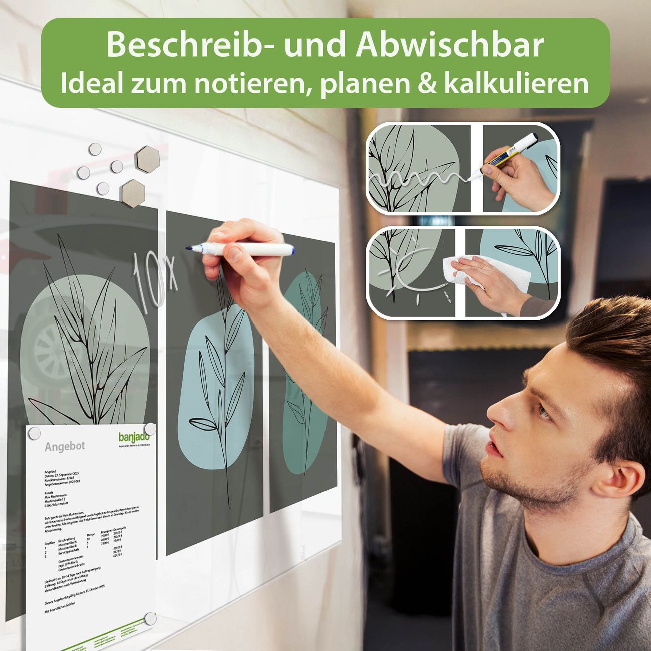 Jede Glas Magnettafel wird in unserer Werkstatt von Hand gefertigt und sorgfältig geprüft. So erhalten Sie ein echtes Qualitätsprodukt, das Funktion und Ästhetik perfekt vereint.?? Warum banjado?
