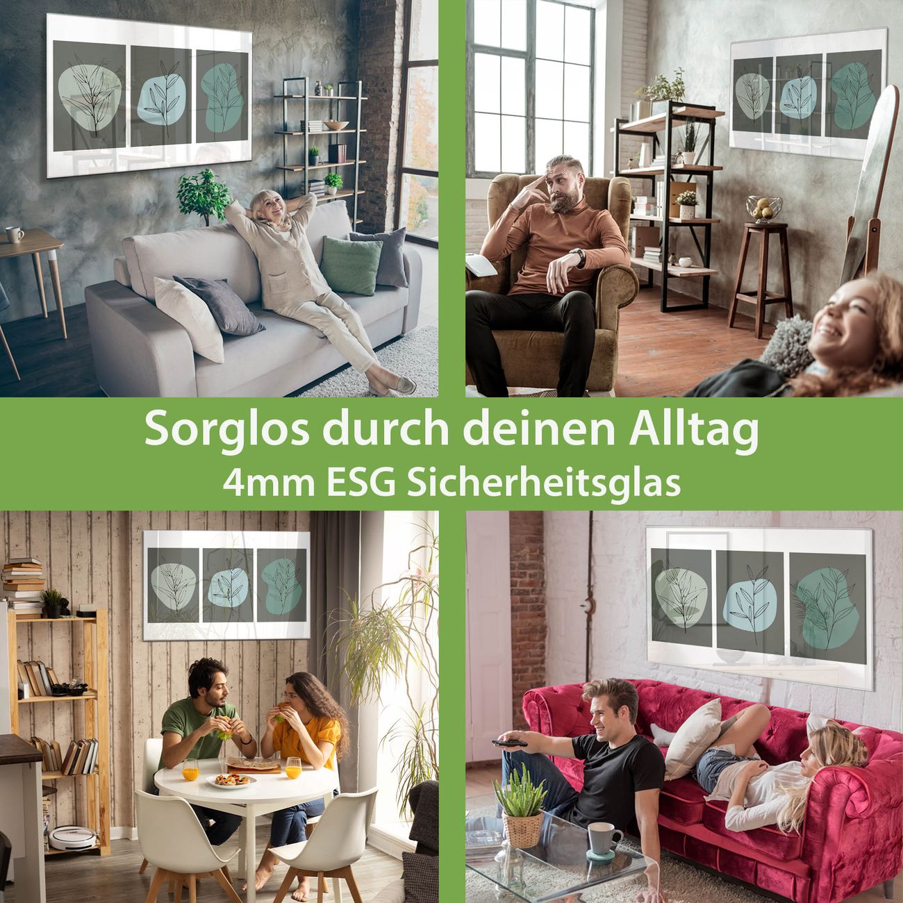 - Material: 4mm Sicherheitsglas mit Metallrückwand
