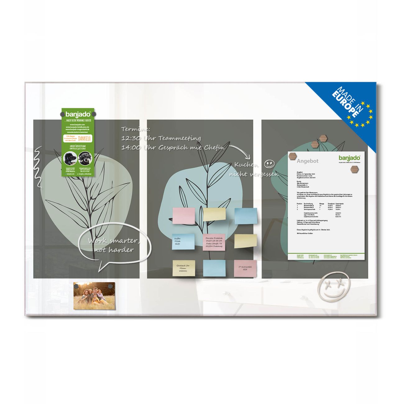 Jede Glas Magnettafel wird in unserer Werkstatt von Hand gefertigt und sorgfältig geprüft. So erhalten Sie ein echtes Qualitätsprodukt, das Funktion und Ästhetik perfekt vereint.?? Warum banjado?