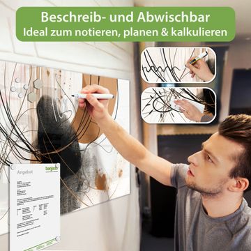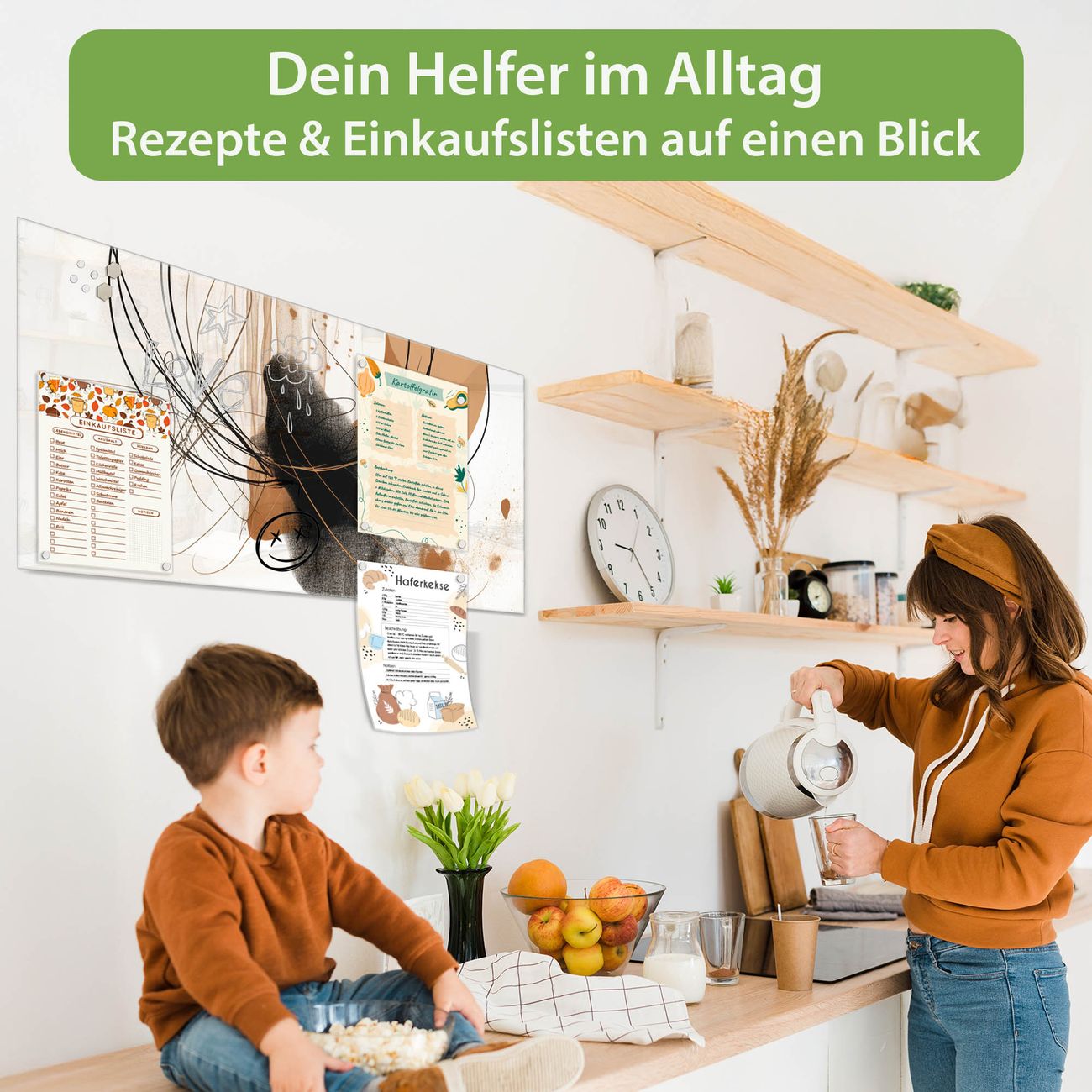 Auf der glatten Glasoberfläche lassen sich Termine, Rezepte oder Notizen ganz einfach mit Kreidestiften festhalten und rückstandslos entfernen. Starke Neodym-Magnete halten Ihre wichtigsten Erinnerungen sicher an Ort und Stelle. So entsteht Ihre ganz persönliche Ideenwand - jeden Tag neu.