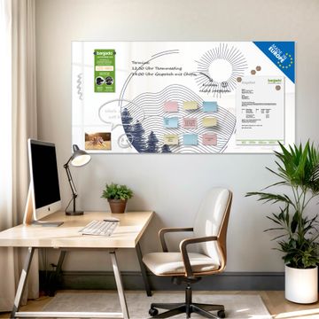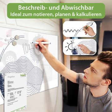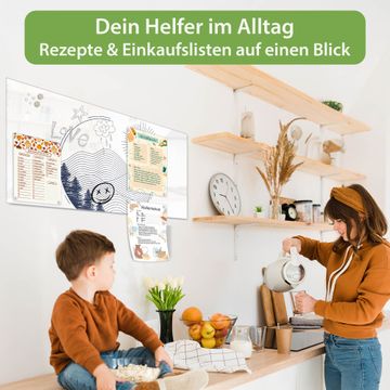 Auf der glatten Glasoberfläche lassen sich Termine, Rezepte oder Notizen ganz einfach mit Kreidestiften festhalten und rückstandslos entfernen. Starke Neodym-Magnete halten Ihre wichtigsten Erinnerungen sicher an Ort und Stelle. So entsteht Ihre ganz persönliche Ideenwand - jeden Tag neu.