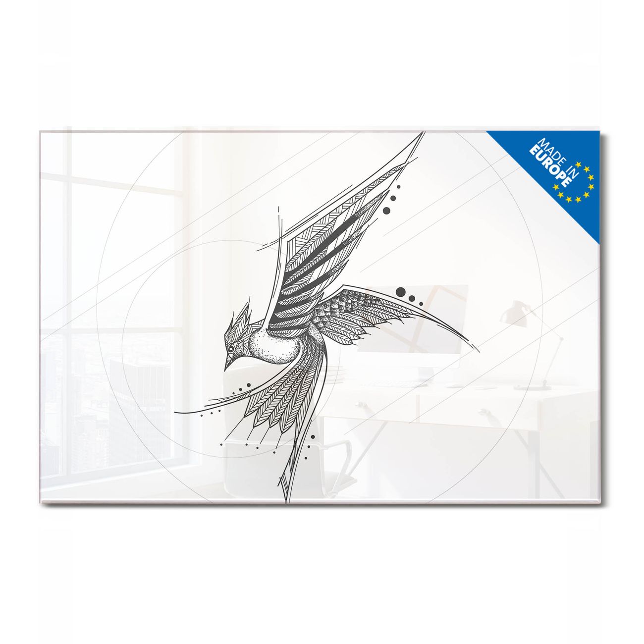 Glas Magnettafel im Querformat Motiv Abstrakte Schwalbe