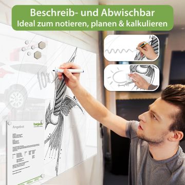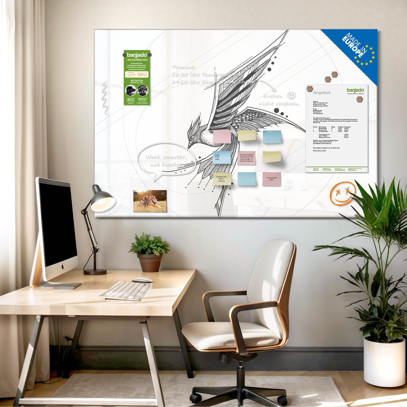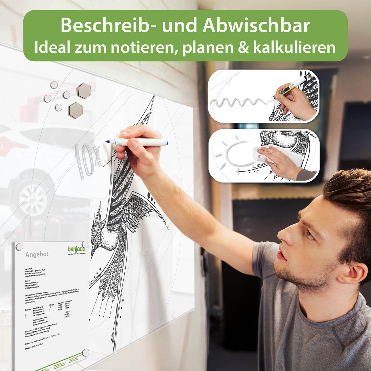 Jede Glas Magnettafel wird in unserer Werkstatt von Hand gefertigt und sorgfältig geprüft. So erhalten Sie ein echtes Qualitätsprodukt, das Funktion und Ästhetik perfekt vereint.?? Warum banjado?