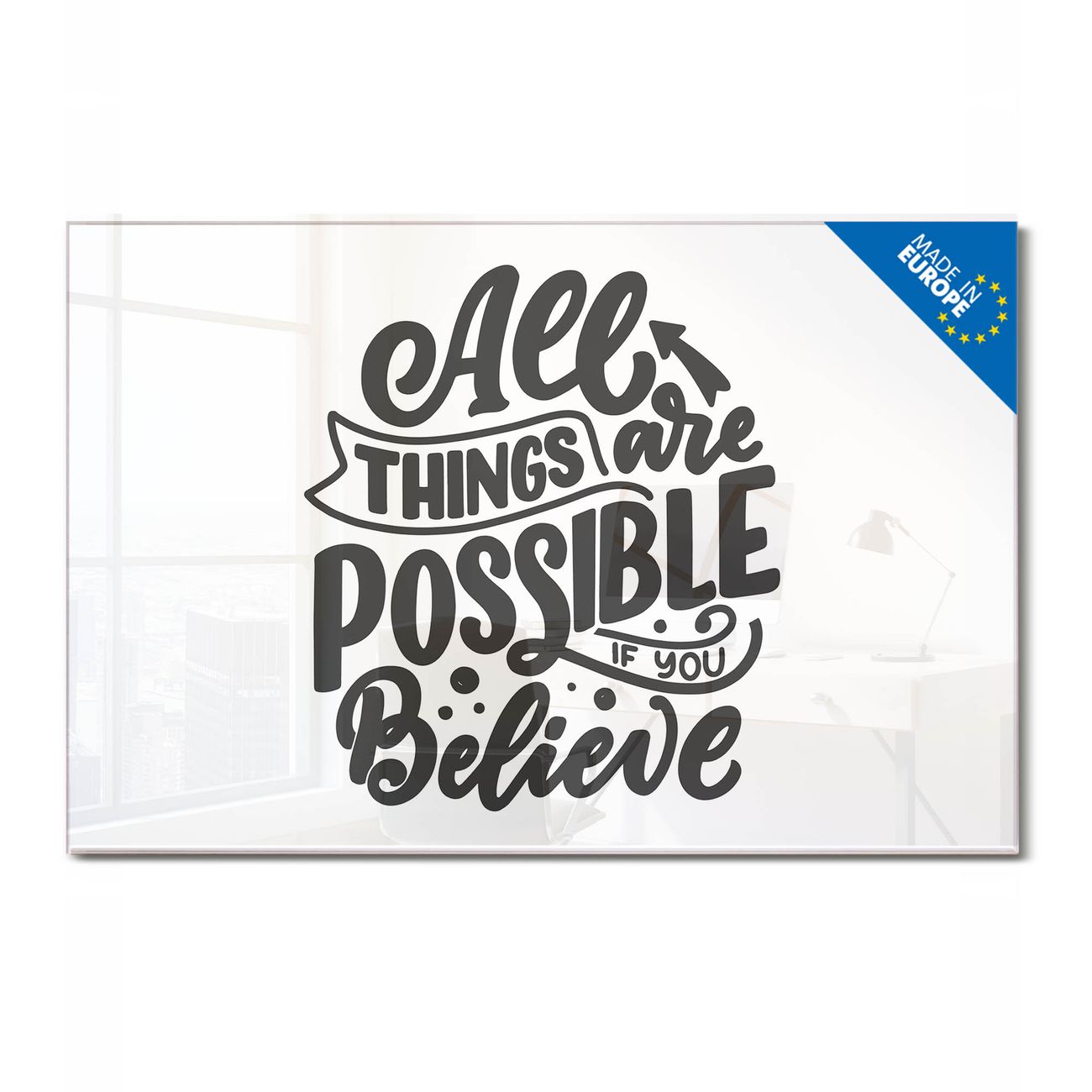 Glas Magnettafel im Querformat Motiv All Things are possible 2