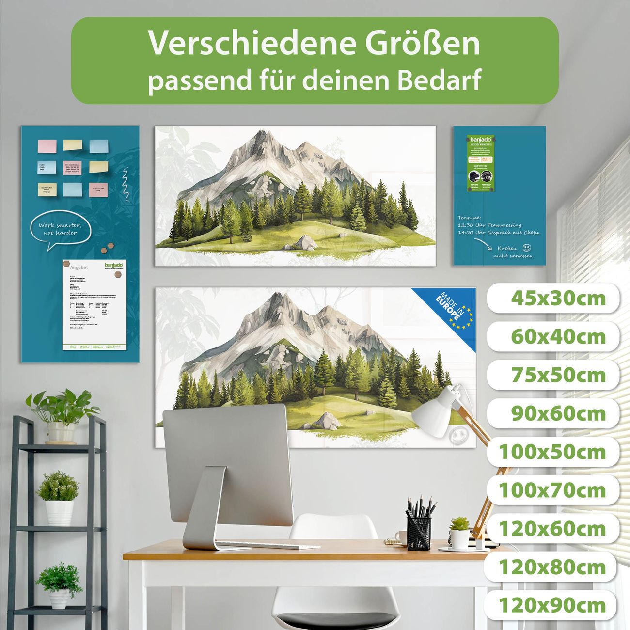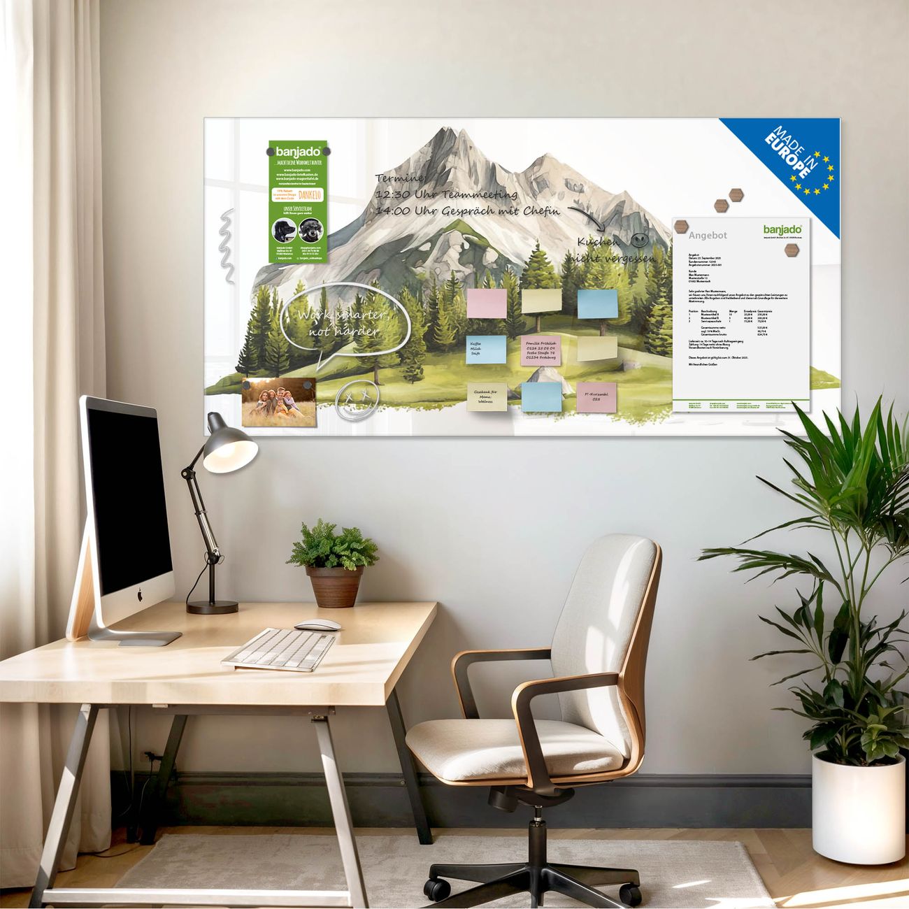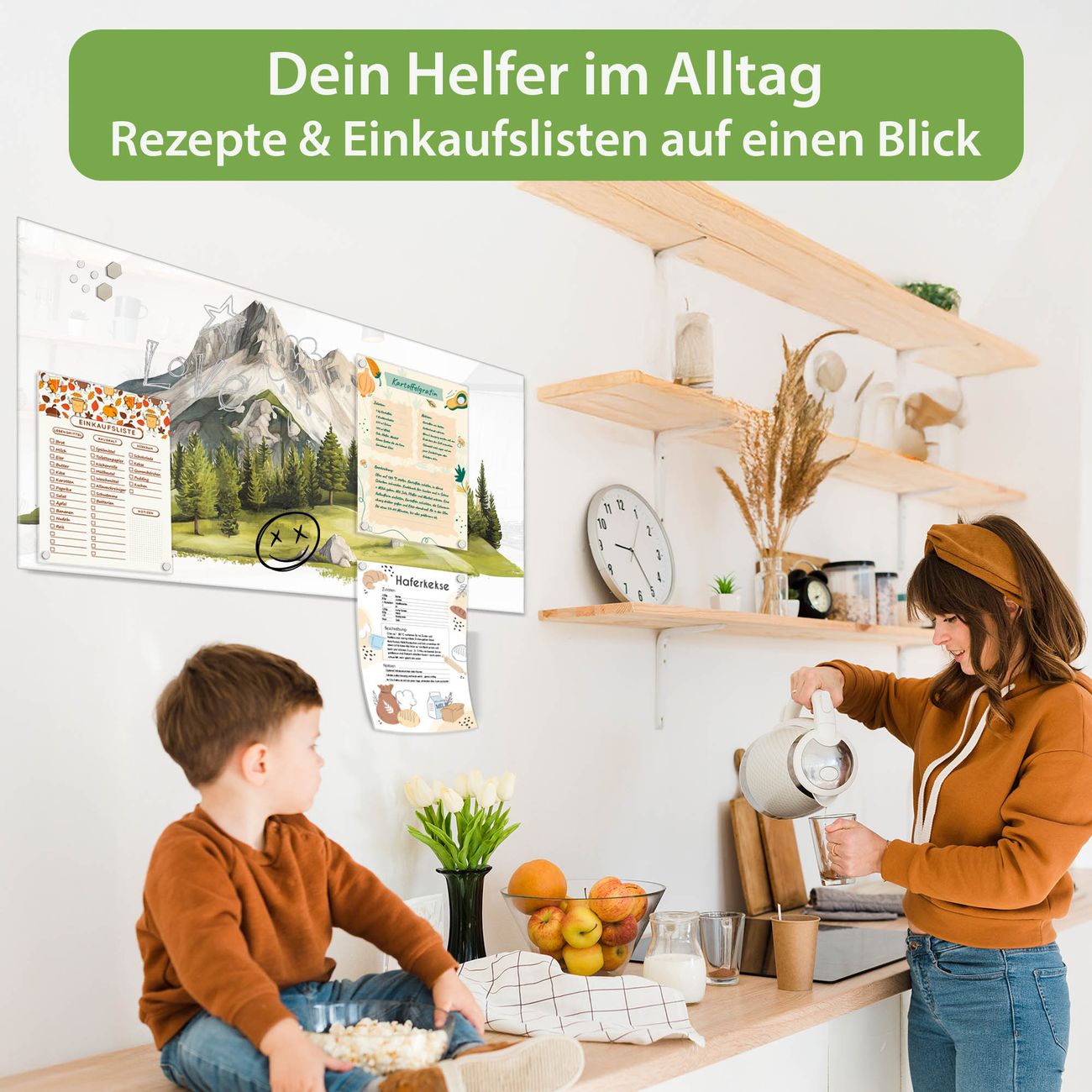 Ein Stück Design, das Ihren Alltag organisiert. Schreiben, heften, inspirieren - alles an einem Ort. Qualität, die man spürt. Montage leicht gemacht. Handwerk mit Herz - veredelt in Sachsen. Einzigartiges Design mit Motiv Motiv Alpine Landschaft Beschreibbare Glasoberfläche, leicht zu reinigen Starke Magnetkraft durch Stahlrückwand Inklusive 4 Neodym-Magneten Flexible Montageoptionen Handveredelt in Sachsen - Qualität, die bleibt