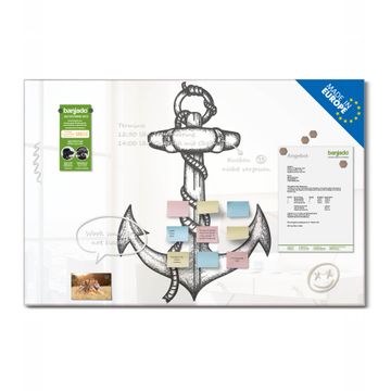 Die banjado Glas Magnettafel mit dem Motiv Motiv Anker 2 verbindet Funktionalität mit Stil. Sie ersetzt das Zettelchaos durch klare Strukturen und bringt dabei eine warme, natürliche Atmosphäre in Ihr Zuhause. Ob im Büro, in der Küche oder im Eingangsbereich - dieses Design-Board zieht Blicke an und sorgt für Ordnung mit Charakter.