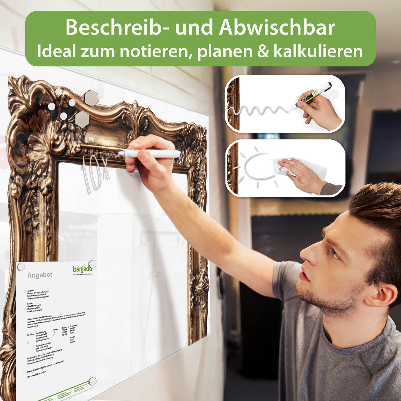 Jede Glas Magnettafel wird in unserer Werkstatt von Hand gefertigt und sorgfältig geprüft. So erhalten Sie ein echtes Qualitätsprodukt, das Funktion und Ästhetik perfekt vereint.?? Warum banjado?