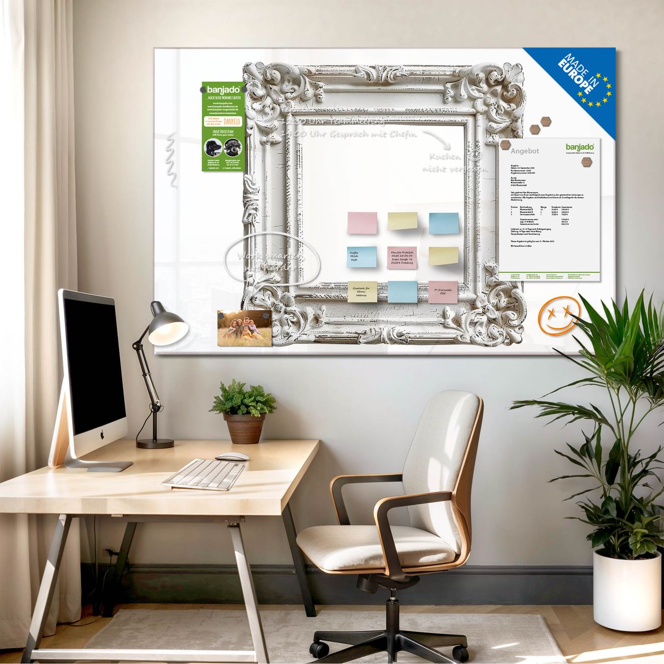 Glas Magnettafel im Querformat Motiv Antiker Bilderrahmen