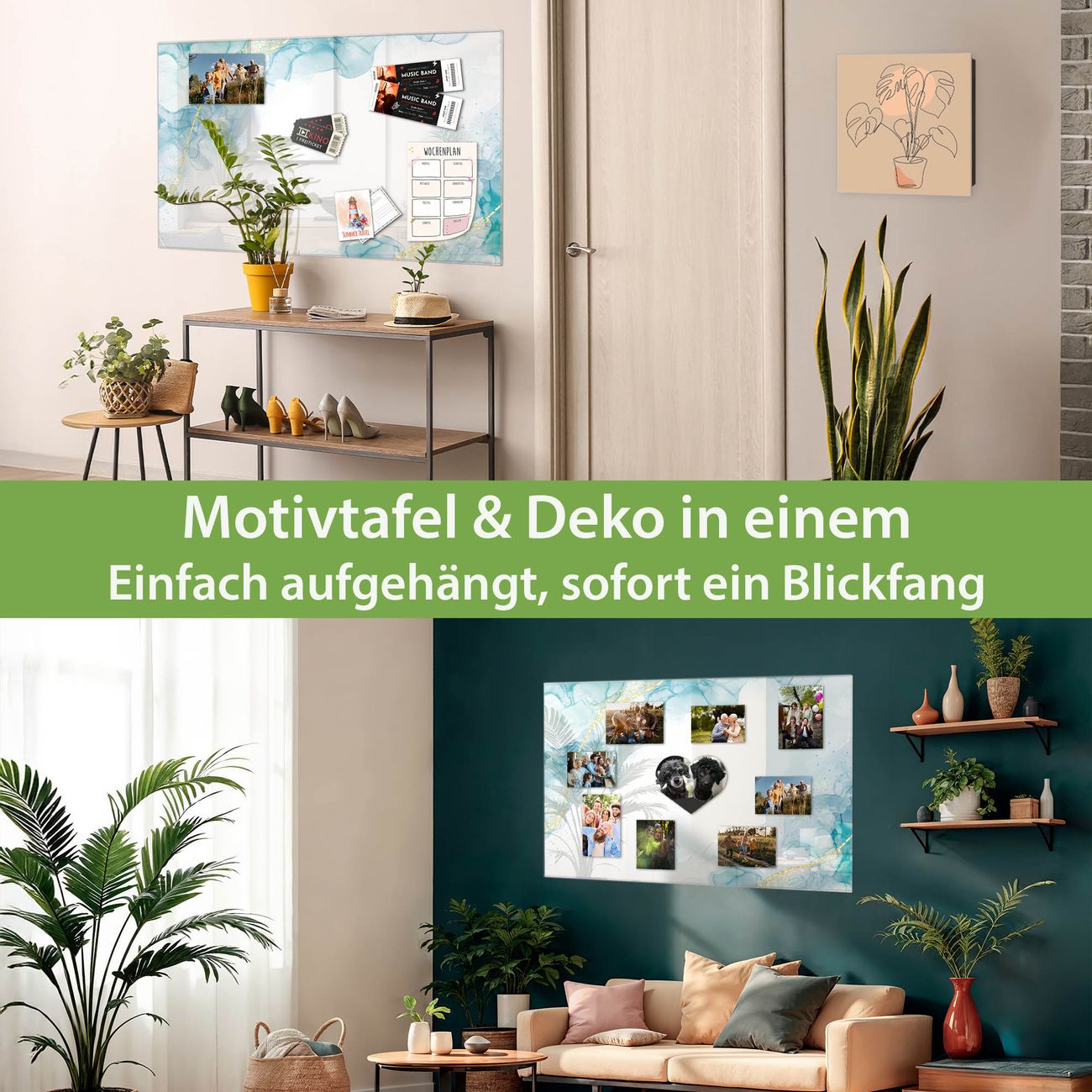 Dank der flachen Bauweise wirkt die Magnetwand fast schwebend an der Wand. Sie können sie mit Montagekleber elegant befestigen oder mit einem passenden Set klassisch verschrauben - beides sorgt für sicheren Halt und eine dezente Optik.