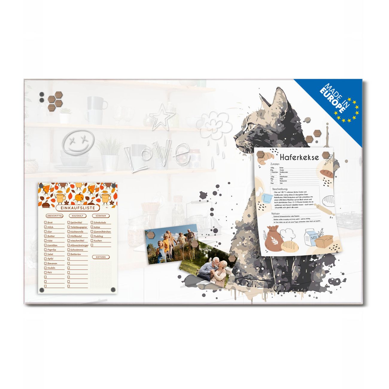 Glas Magnettafel im Querformat Motiv Aquarellkatze 2
