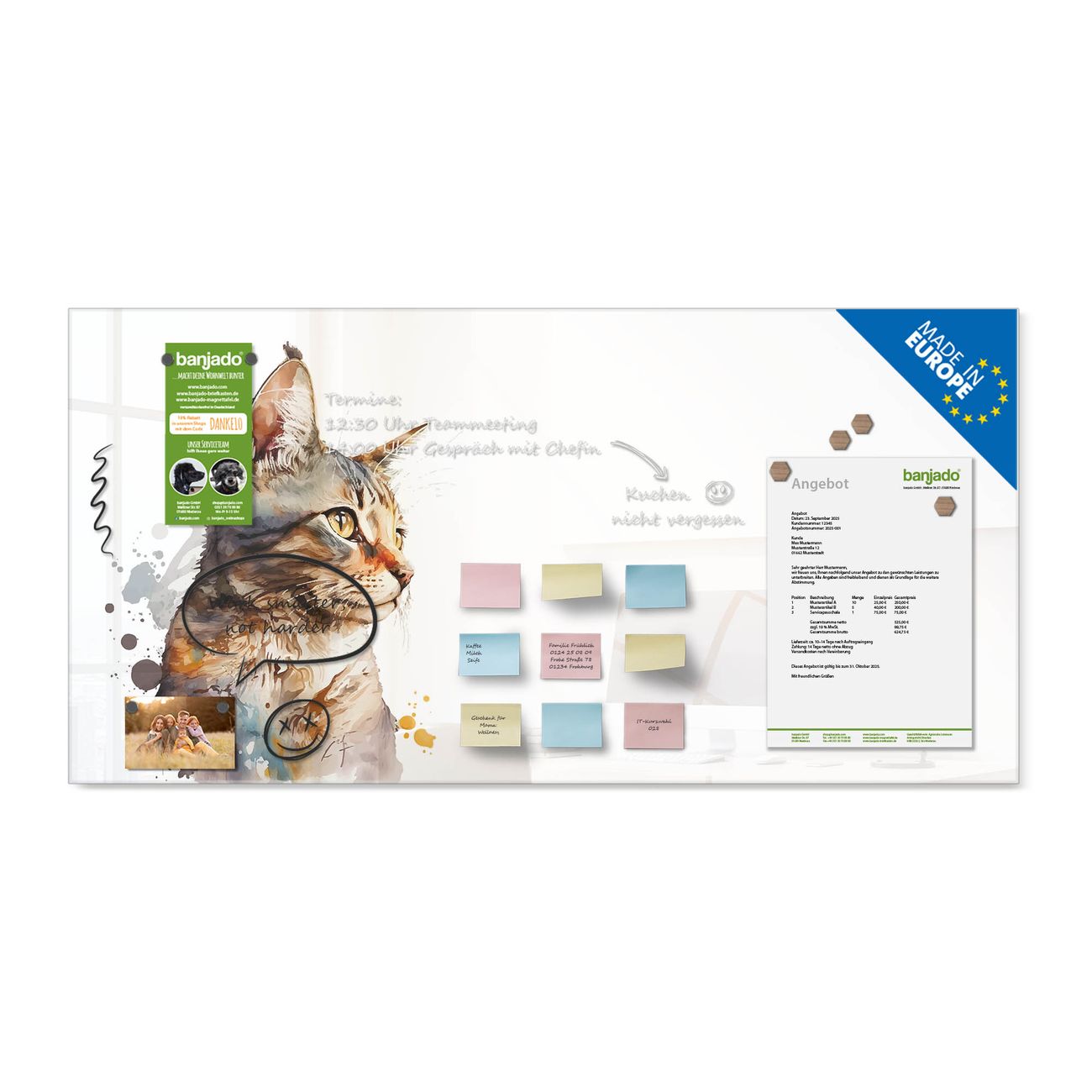 Glas Magnettafel im Querformat Motiv Aquarellkatze