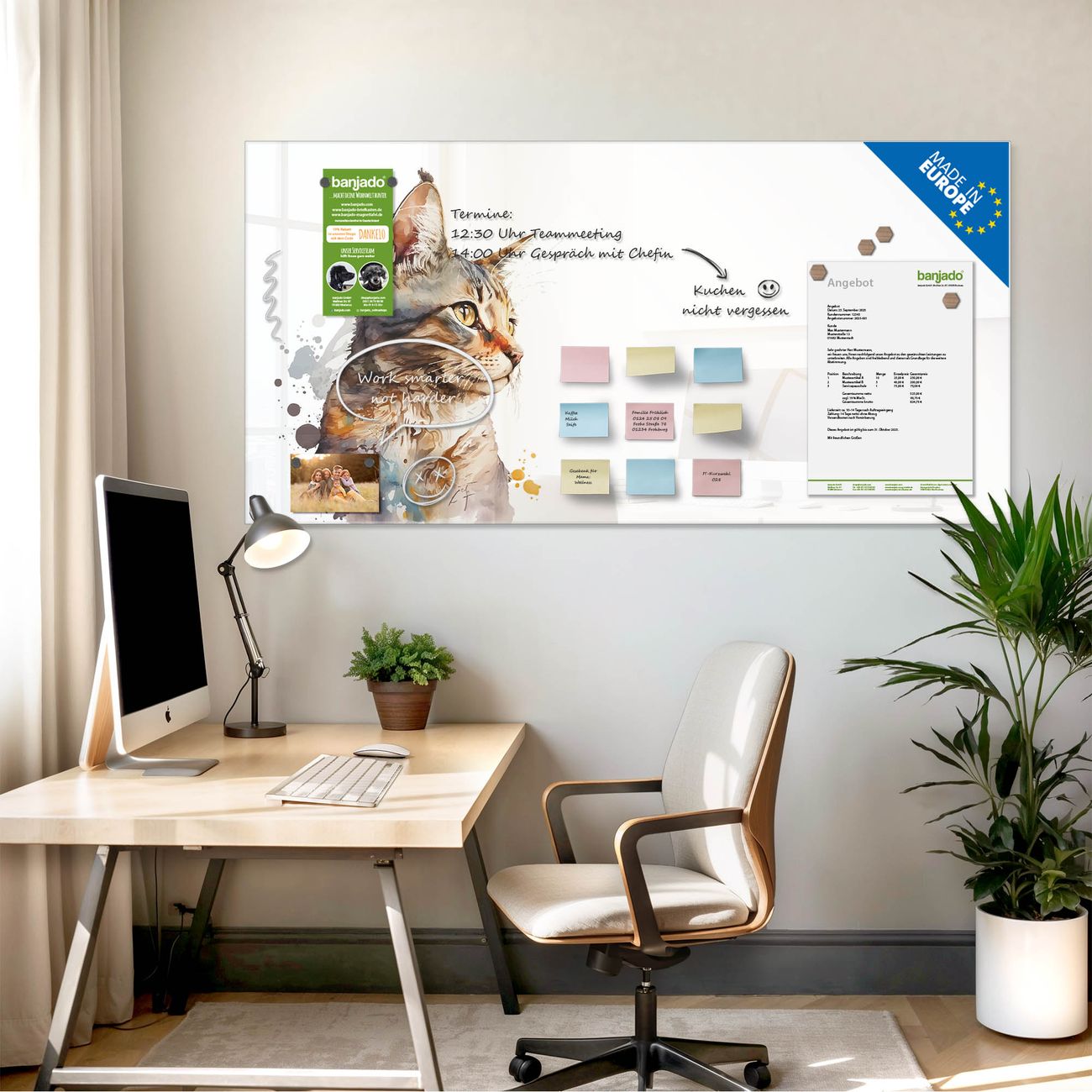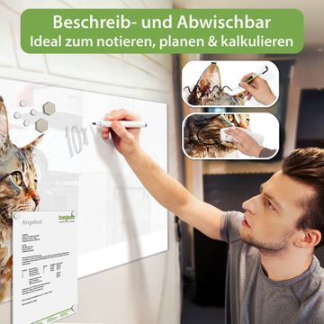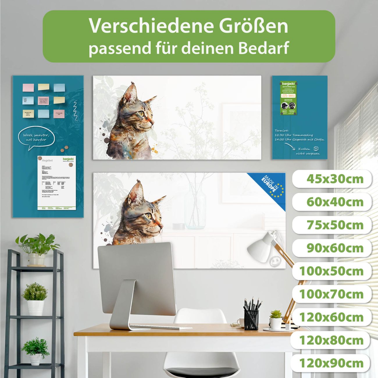 Die banjado Glas Magnettafel mit dem Motiv Motiv Aquarellkatze verbindet Funktionalität mit Stil. Sie ersetzt das Zettelchaos durch klare Strukturen und bringt dabei eine warme, natürliche Atmosphäre in Ihr Zuhause. Ob im Büro, in der Küche oder im Eingangsbereich - dieses Design-Board zieht Blicke an und sorgt für Ordnung mit Charakter.