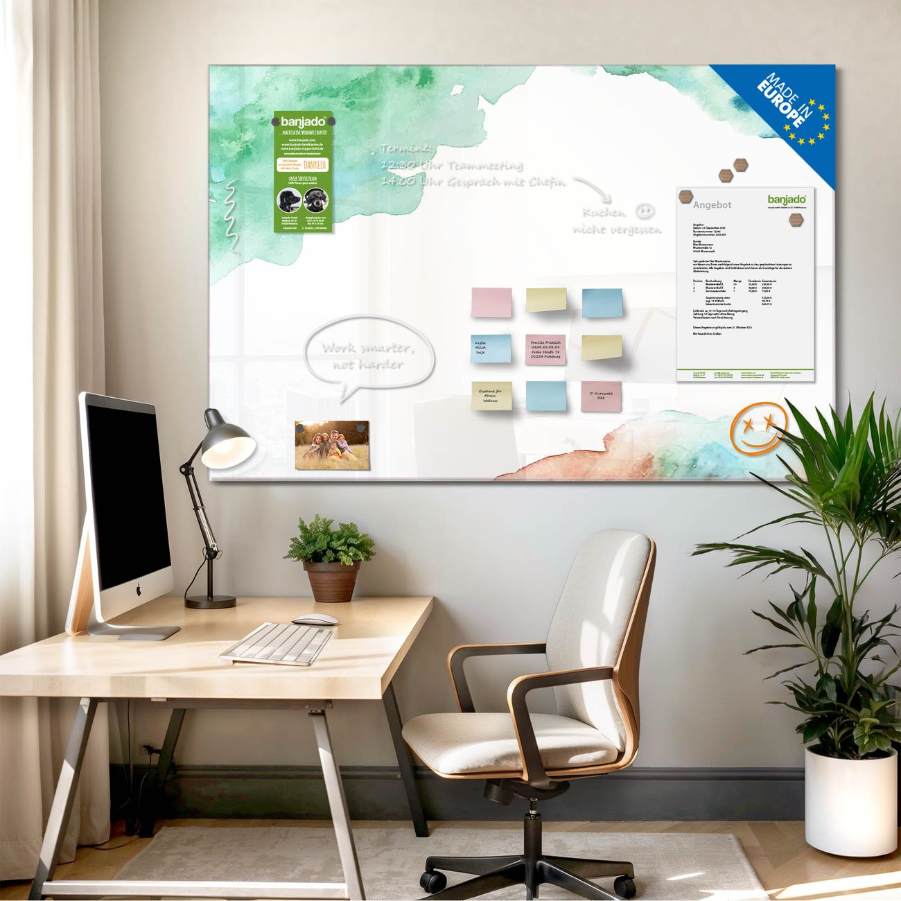 Die banjado Glas Magnettafel mit dem Motiv Motiv Aquarellzauber verbindet Funktionalität mit Stil. Sie ersetzt das Zettelchaos durch klare Strukturen und bringt dabei eine warme, natürliche Atmosphäre in Ihr Zuhause. Ob im Büro, in der Küche oder im Eingangsbereich - dieses Design-Board zieht Blicke an und sorgt für Ordnung mit Charakter.