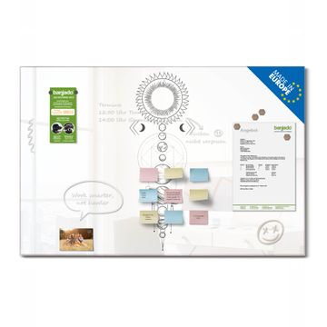 Auf der glatten Glasoberfläche lassen sich Termine, Rezepte oder Notizen ganz einfach mit Kreidestiften festhalten und rückstandslos entfernen. Starke Neodym-Magnete halten Ihre wichtigsten Erinnerungen sicher an Ort und Stelle. So entsteht Ihre ganz persönliche Ideenwand - jeden Tag neu.