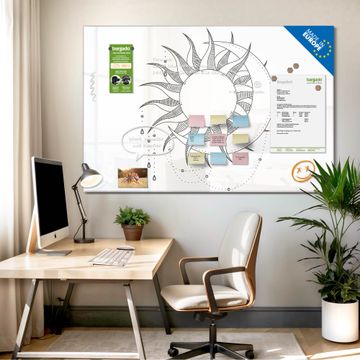 Auf der glatten Glasoberfläche lassen sich Termine, Rezepte oder Notizen ganz einfach mit Kreidestiften festhalten und rückstandslos entfernen. Starke Neodym-Magnete halten Ihre wichtigsten Erinnerungen sicher an Ort und Stelle. So entsteht Ihre ganz persönliche Ideenwand - jeden Tag neu.