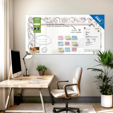 Auf der glatten Glasoberfläche lassen sich Termine, Rezepte oder Notizen ganz einfach mit Kreidestiften festhalten und rückstandslos entfernen. Starke Neodym-Magnete halten Ihre wichtigsten Erinnerungen sicher an Ort und Stelle. So entsteht Ihre ganz persönliche Ideenwand - jeden Tag neu.