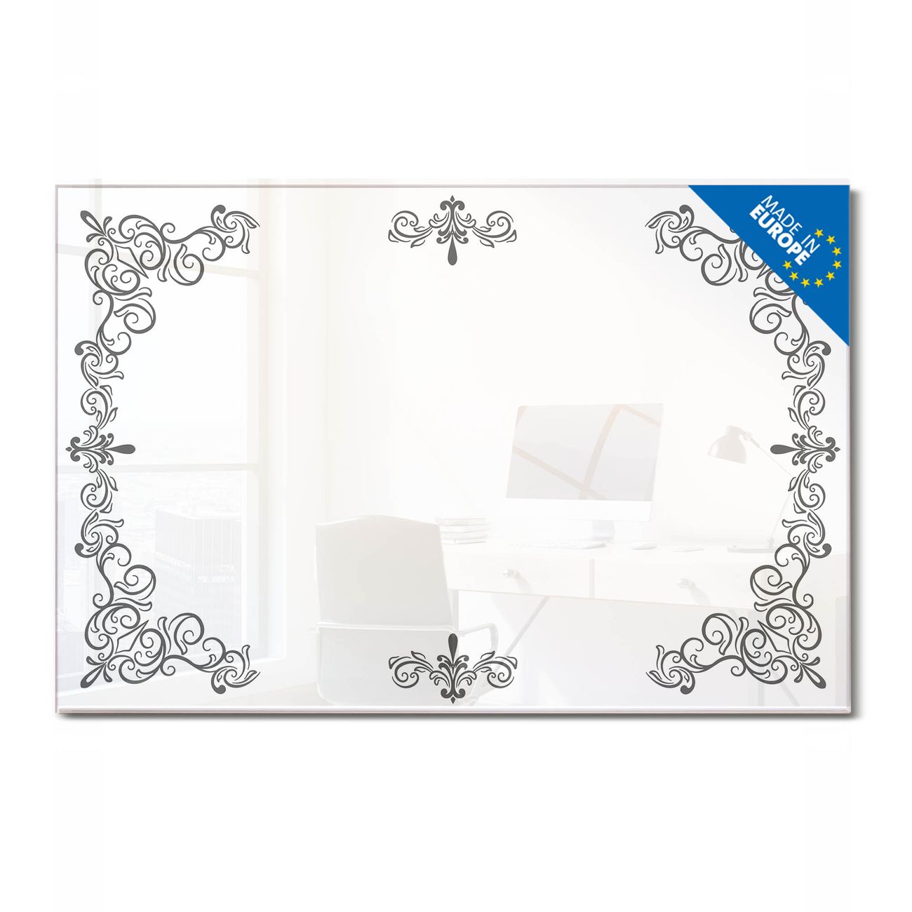 Glas Magnettafel im Querformat Motiv Barockrahmen