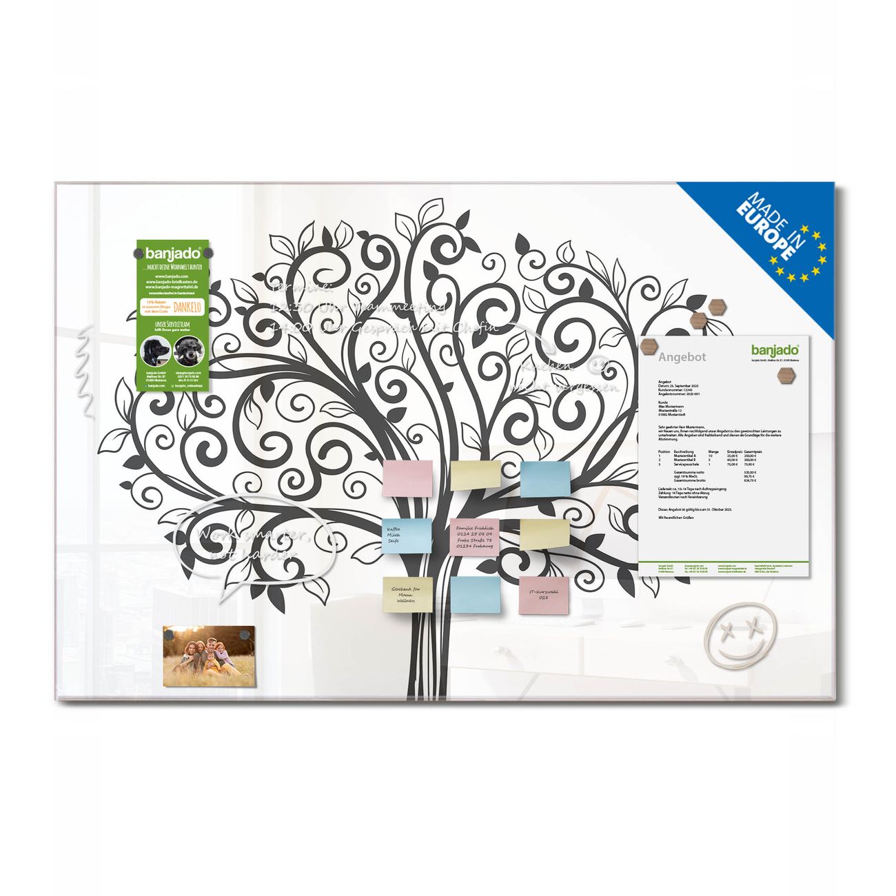 Jede Glas Magnettafel wird in unserer Werkstatt von Hand gefertigt und sorgfältig geprüft. So erhalten Sie ein echtes Qualitätsprodukt, das Funktion und Ästhetik perfekt vereint.?? Warum banjado?