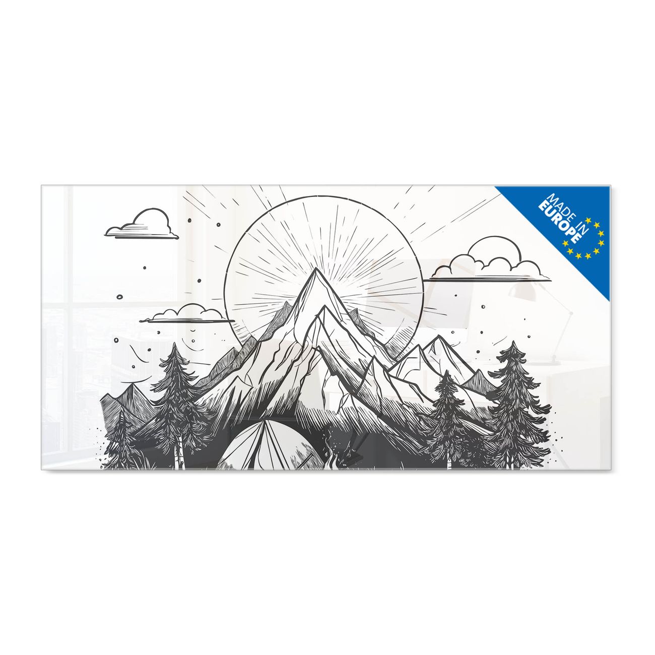 Glas Magnettafel im Querformat Motiv Bergcamping Abenteuer 2