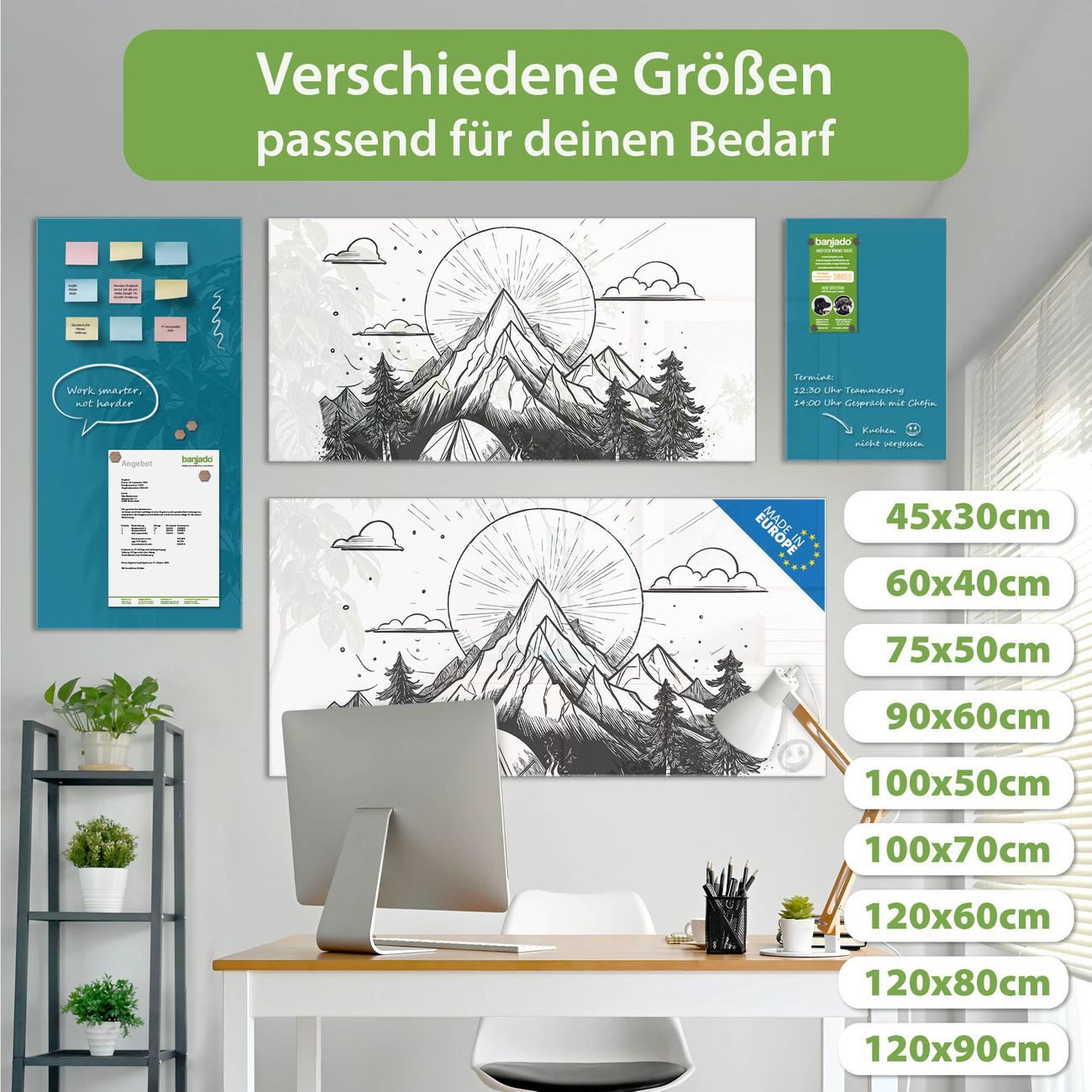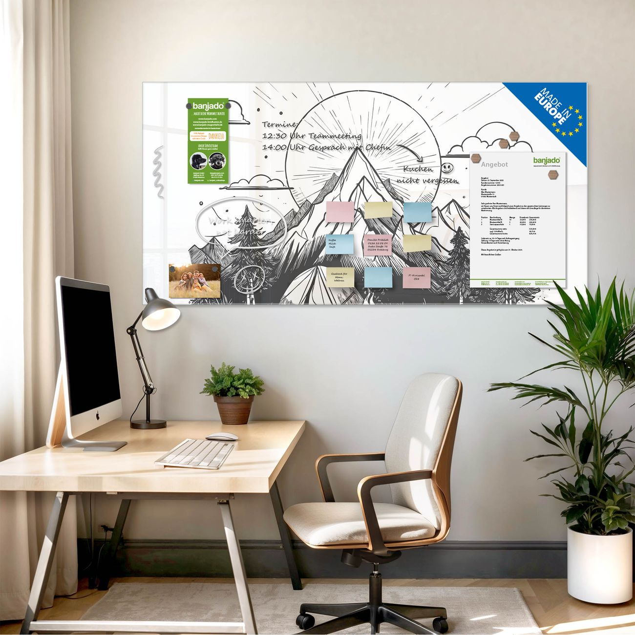 Jede Glas Magnettafel wird in unserer Werkstatt von Hand gefertigt und sorgfältig geprüft. So erhalten Sie ein echtes Qualitätsprodukt, das Funktion und Ästhetik perfekt vereint.?? Warum banjado?