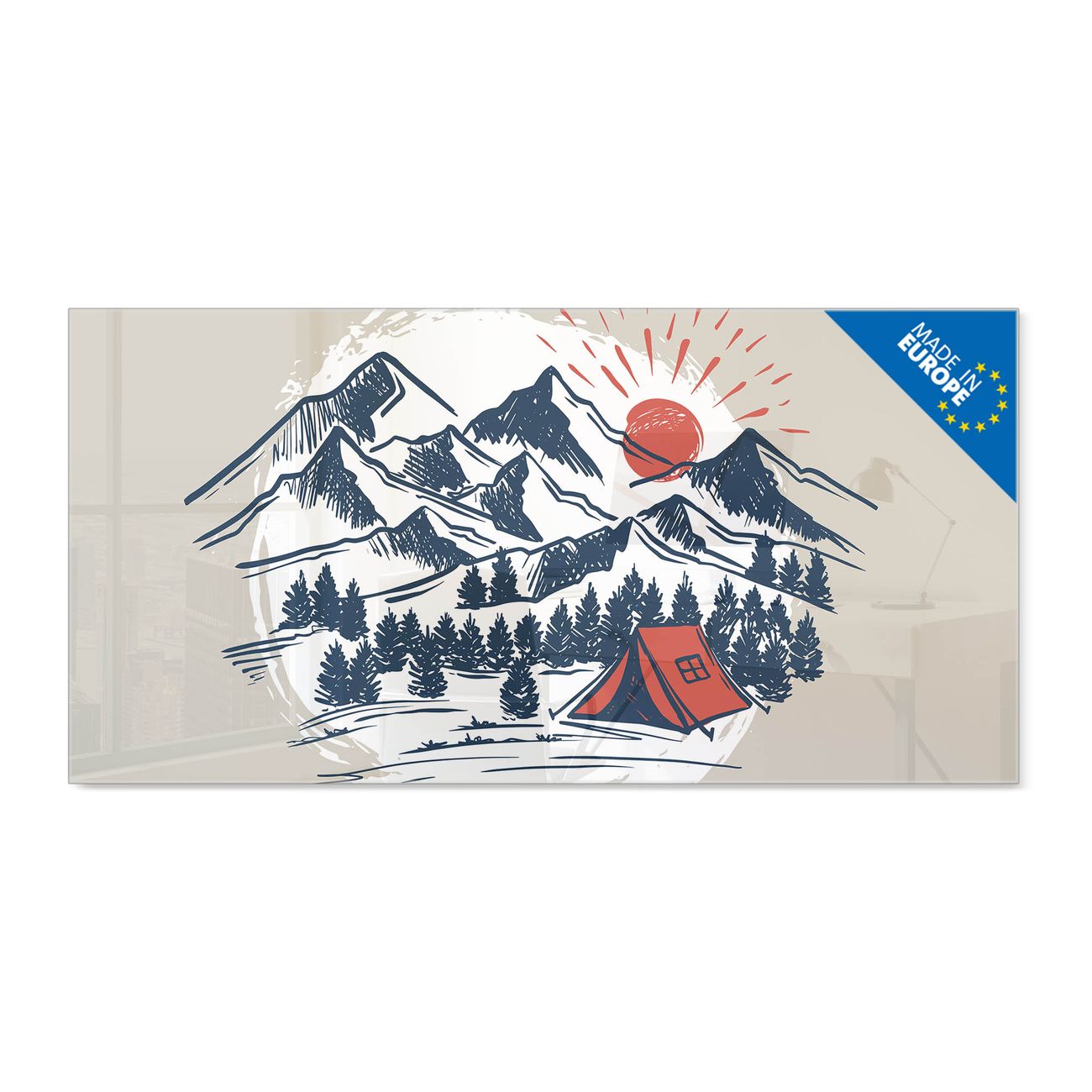 Glas Magnettafel im Querformat Motiv Bergcamping Abenteuer