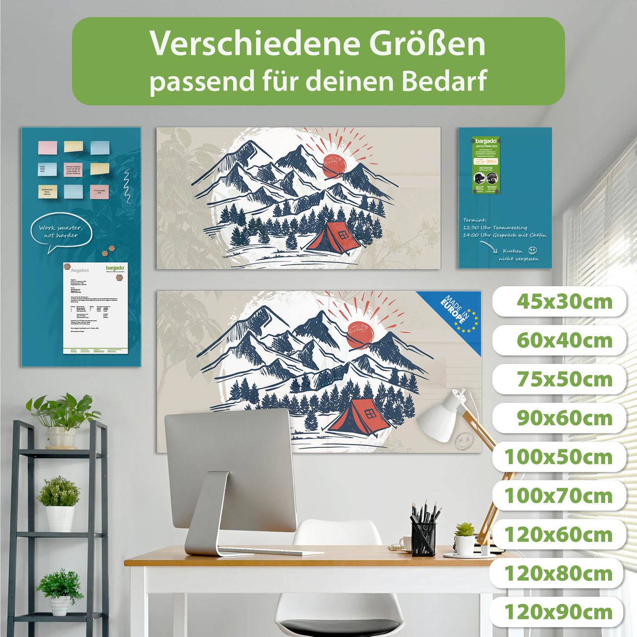 Ein Stück Design, das Ihren Alltag organisiert. Schreiben, heften, inspirieren - alles an einem Ort. Qualität, die man spürt. Montage leicht gemacht. Handwerk mit Herz - veredelt in Sachsen. Einzigartiges Design mit Motiv Motiv Bergcamping Abenteuer Beschreibbare Glasoberfläche, leicht zu reinigen Starke Magnetkraft durch Stahlrückwand Inklusive 4 Neodym-Magneten Flexible Montageoptionen Handveredelt in Sachsen - Qualität, die bleibt
