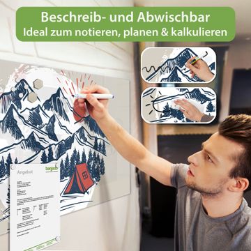 Die banjado Glas Magnettafel mit dem Motiv Motiv Bergcamping Abenteuer verbindet Funktionalität mit Stil. Sie ersetzt das Zettelchaos durch klare Strukturen und bringt dabei eine warme, natürliche Atmosphäre in Ihr Zuhause. Ob im Büro, in der Küche oder im Eingangsbereich - dieses Design-Board zieht Blicke an und sorgt für Ordnung mit Charakter.