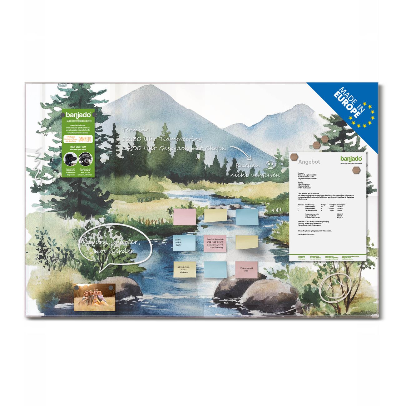 Die banjado Glas Magnettafel mit dem Motiv Motiv Bergfluss in der Natur verbindet Funktionalität mit Stil. Sie ersetzt das Zettelchaos durch klare Strukturen und bringt dabei eine warme, natürliche Atmosphäre in Ihr Zuhause. Ob im Büro, in der Küche oder im Eingangsbereich - dieses Design-Board zieht Blicke an und sorgt für Ordnung mit Charakter.