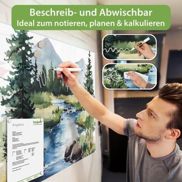 Die banjado Glas Magnettafel mit dem Motiv Motiv Bergfluss in der Natur verbindet Funktionalität mit Stil. Sie ersetzt das Zettelchaos durch klare Strukturen und bringt dabei eine warme, natürliche Atmosphäre in Ihr Zuhause. Ob im Büro, in der Küche oder im Eingangsbereich - dieses Design-Board zieht Blicke an und sorgt für Ordnung mit Charakter.