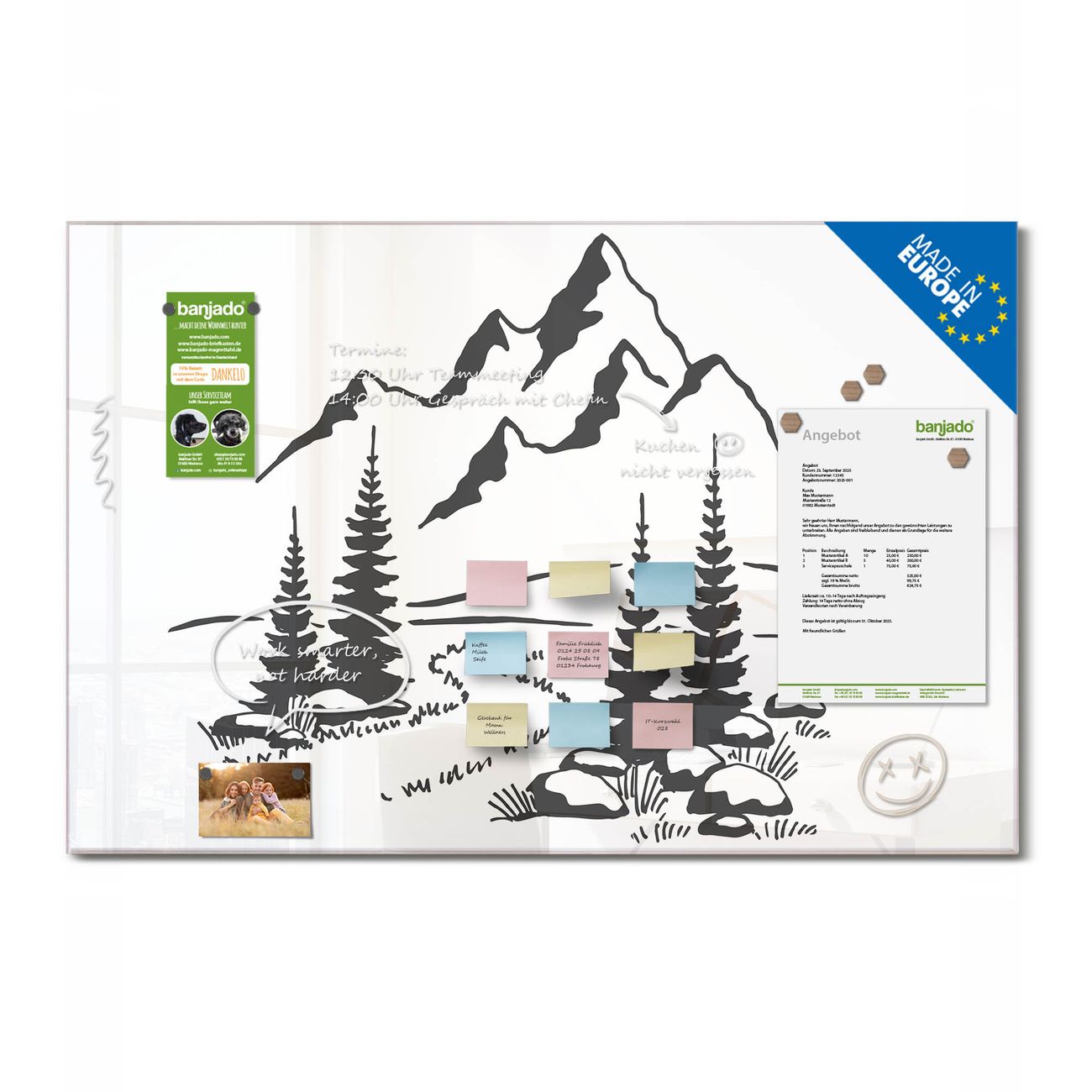 Glas Magnettafel im Querformat Motiv Berglandschaft Zeichnung