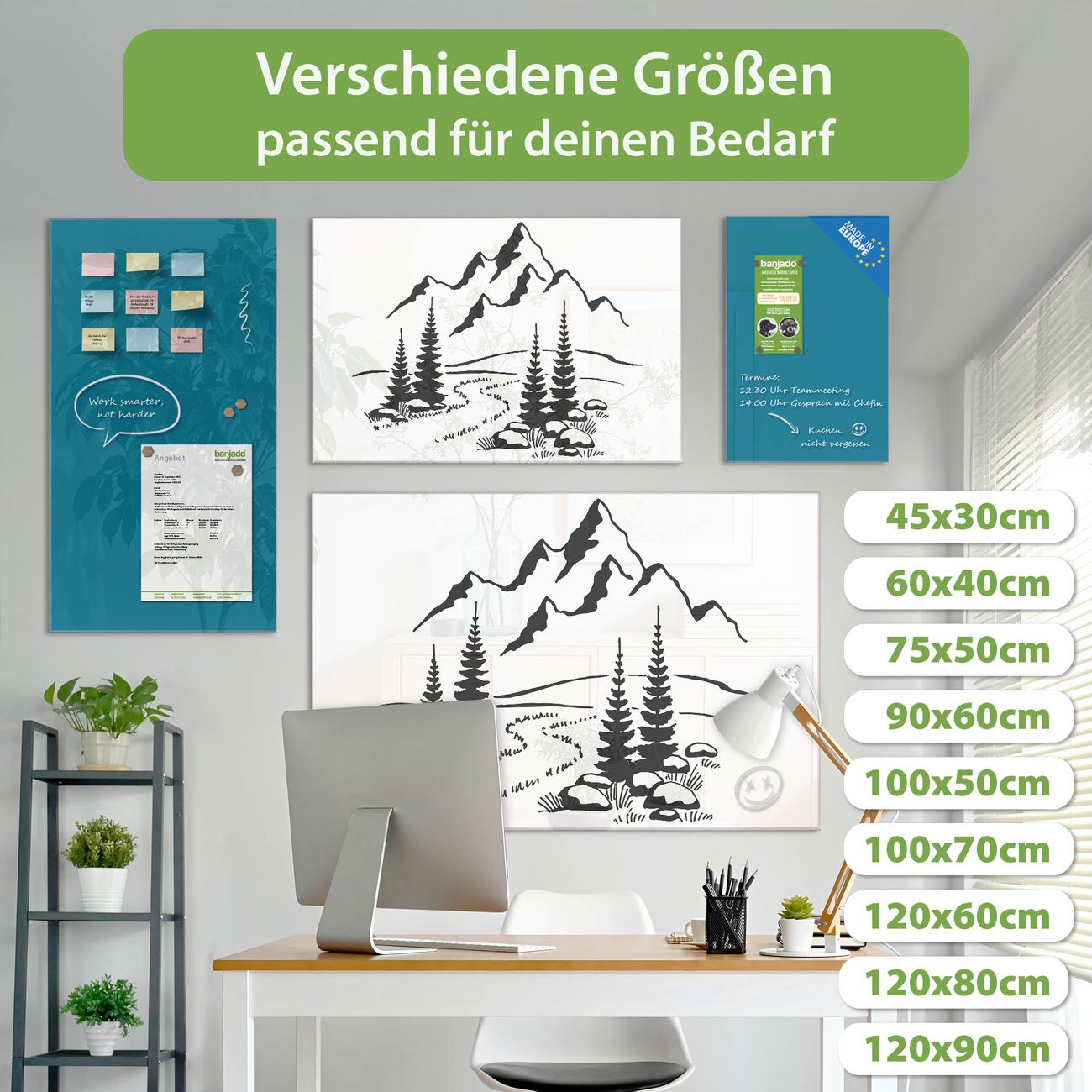 Ein Stück Design, das Ihren Alltag organisiert. Schreiben, heften, inspirieren - alles an einem Ort. Qualität, die man spürt. Montage leicht gemacht. Handwerk mit Herz - veredelt in Sachsen. Einzigartiges Design mit Motiv Motiv Berglandschaft Beschreibbare Glasoberfläche, leicht zu reinigen Starke Magnetkraft durch Stahlrückwand Inklusive 4 Neodym-Magneten Flexible Montageoptionen Handveredelt in Sachsen - Qualität, die bleibt