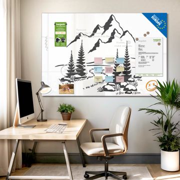 Die banjado Glas Magnettafel mit dem Motiv Motiv Berglandschaft verbindet Funktionalität mit Stil. Sie ersetzt das Zettelchaos durch klare Strukturen und bringt dabei eine warme, natürliche Atmosphäre in Ihr Zuhause. Ob im Büro, in der Küche oder im Eingangsbereich - dieses Design-Board zieht Blicke an und sorgt für Ordnung mit Charakter.