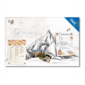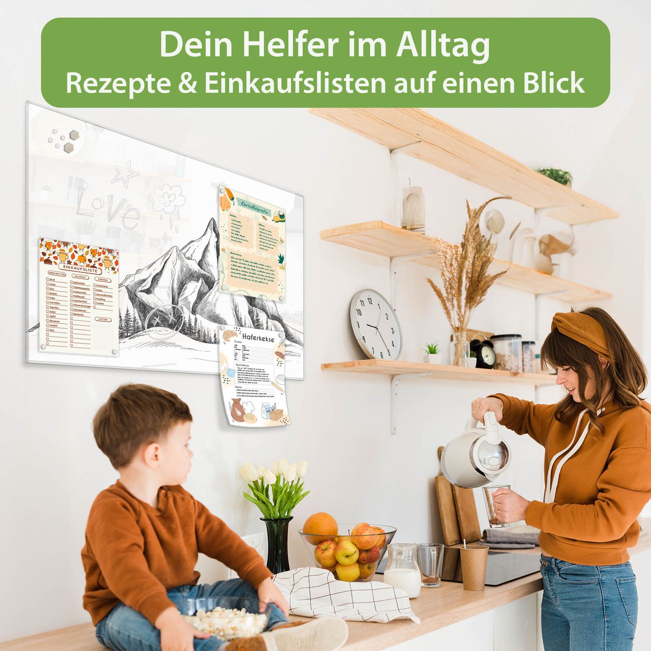 Ein Stück Design, das Ihren Alltag organisiert. Schreiben, heften, inspirieren - alles an einem Ort. Qualität, die man spürt. Montage leicht gemacht. Handwerk mit Herz - veredelt in Sachsen. Einzigartiges Design mit Motiv Motiv Bergsilhouette Beschreibbare Glasoberfläche, leicht zu reinigen Starke Magnetkraft durch Stahlrückwand Inklusive 4 Neodym-Magneten Flexible Montageoptionen Handveredelt in Sachsen - Qualität, die bleibt