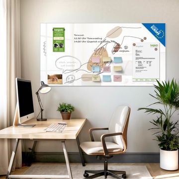 Auf der glatten Glasoberfläche lassen sich Termine, Rezepte oder Notizen ganz einfach mit Kreidestiften festhalten und rückstandslos entfernen. Starke Neodym-Magnete halten Ihre wichtigsten Erinnerungen sicher an Ort und Stelle. So entsteht Ihre ganz persönliche Ideenwand - jeden Tag neu.