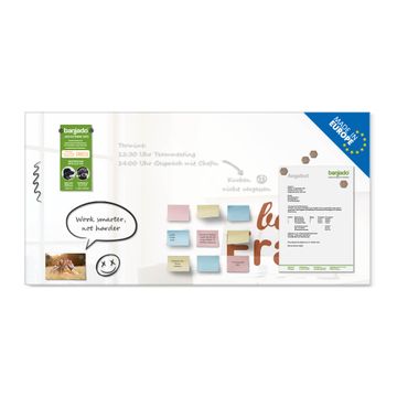 Auf der glatten Glasoberfläche lassen sich Termine, Rezepte oder Notizen ganz einfach mit Kreidestiften festhalten und rückstandslos entfernen. Starke Neodym-Magnete halten Ihre wichtigsten Erinnerungen sicher an Ort und Stelle. So entsteht Ihre ganz persönliche Ideenwand - jeden Tag neu.