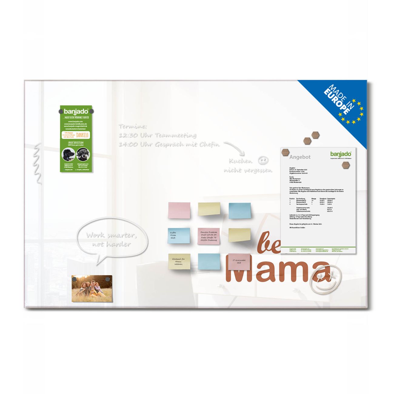 Die banjado Glas Magnettafel mit dem Motiv Motiv beste Mama 2 verbindet Funktionalität mit Stil. Sie ersetzt das Zettelchaos durch klare Strukturen und bringt dabei eine warme, natürliche Atmosphäre in Ihr Zuhause. Ob im Büro, in der Küche oder im Eingangsbereich - dieses Design-Board zieht Blicke an und sorgt für Ordnung mit Charakter.
