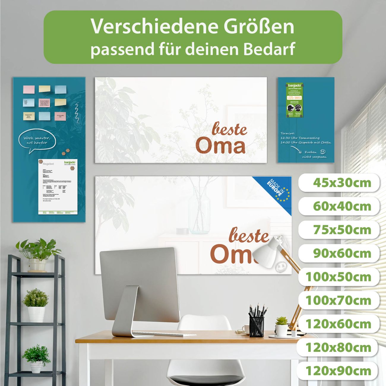 Jede Glas Magnettafel wird in unserer Werkstatt von Hand gefertigt und sorgfältig geprüft. So erhalten Sie ein echtes Qualitätsprodukt, das Funktion und Ästhetik perfekt vereint.?? Warum banjado?