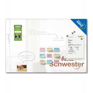 Die banjado Glas Magnettafel mit dem Motiv Motiv beste Schwester 2 verbindet Funktionalität mit Stil. Sie ersetzt das Zettelchaos durch klare Strukturen und bringt dabei eine warme, natürliche Atmosphäre in Ihr Zuhause. Ob im Büro, in der Küche oder im Eingangsbereich - dieses Design-Board zieht Blicke an und sorgt für Ordnung mit Charakter.