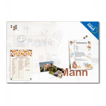 Auf der glatten Glasoberfläche lassen sich Termine, Rezepte oder Notizen ganz einfach mit Kreidestiften festhalten und rückstandslos entfernen. Starke Neodym-Magnete halten Ihre wichtigsten Erinnerungen sicher an Ort und Stelle. So entsteht Ihre ganz persönliche Ideenwand - jeden Tag neu.