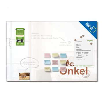 Auf der glatten Glasoberfläche lassen sich Termine, Rezepte oder Notizen ganz einfach mit Kreidestiften festhalten und rückstandslos entfernen. Starke Neodym-Magnete halten Ihre wichtigsten Erinnerungen sicher an Ort und Stelle. So entsteht Ihre ganz persönliche Ideenwand - jeden Tag neu.
