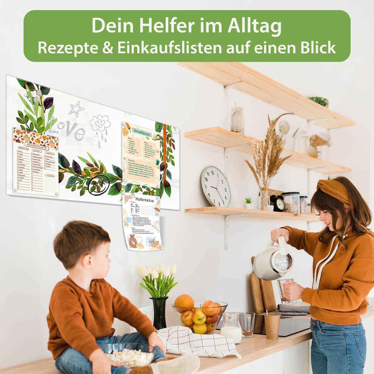 Auf der glatten Glasoberfläche lassen sich Termine, Rezepte oder Notizen ganz einfach mit Kreidestiften festhalten und rückstandslos entfernen. Starke Neodym-Magnete halten Ihre wichtigsten Erinnerungen sicher an Ort und Stelle. So entsteht Ihre ganz persönliche Ideenwand - jeden Tag neu.