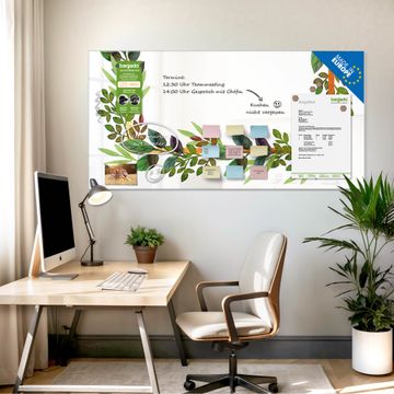 Die banjado Glas Magnettafel mit dem Motiv Motiv Blätterrahmen 2 verbindet Funktionalität mit Stil. Sie ersetzt das Zettelchaos durch klare Strukturen und bringt dabei eine warme, natürliche Atmosphäre in Ihr Zuhause. Ob im Büro, in der Küche oder im Eingangsbereich - dieses Design-Board zieht Blicke an und sorgt für Ordnung mit Charakter.