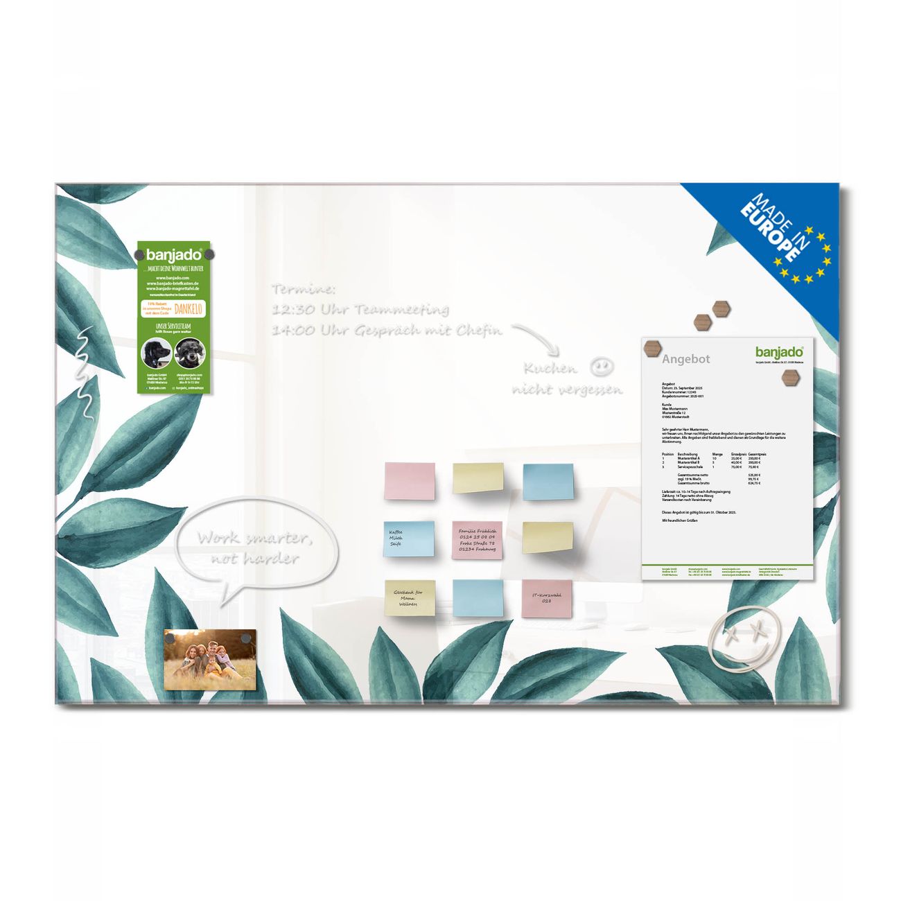 Die banjado Glas Magnettafel mit dem Motiv Motiv Blätterrahmen verbindet Funktionalität mit Stil. Sie ersetzt das Zettelchaos durch klare Strukturen und bringt dabei eine warme, natürliche Atmosphäre in Ihr Zuhause. Ob im Büro, in der Küche oder im Eingangsbereich - dieses Design-Board zieht Blicke an und sorgt für Ordnung mit Charakter.
