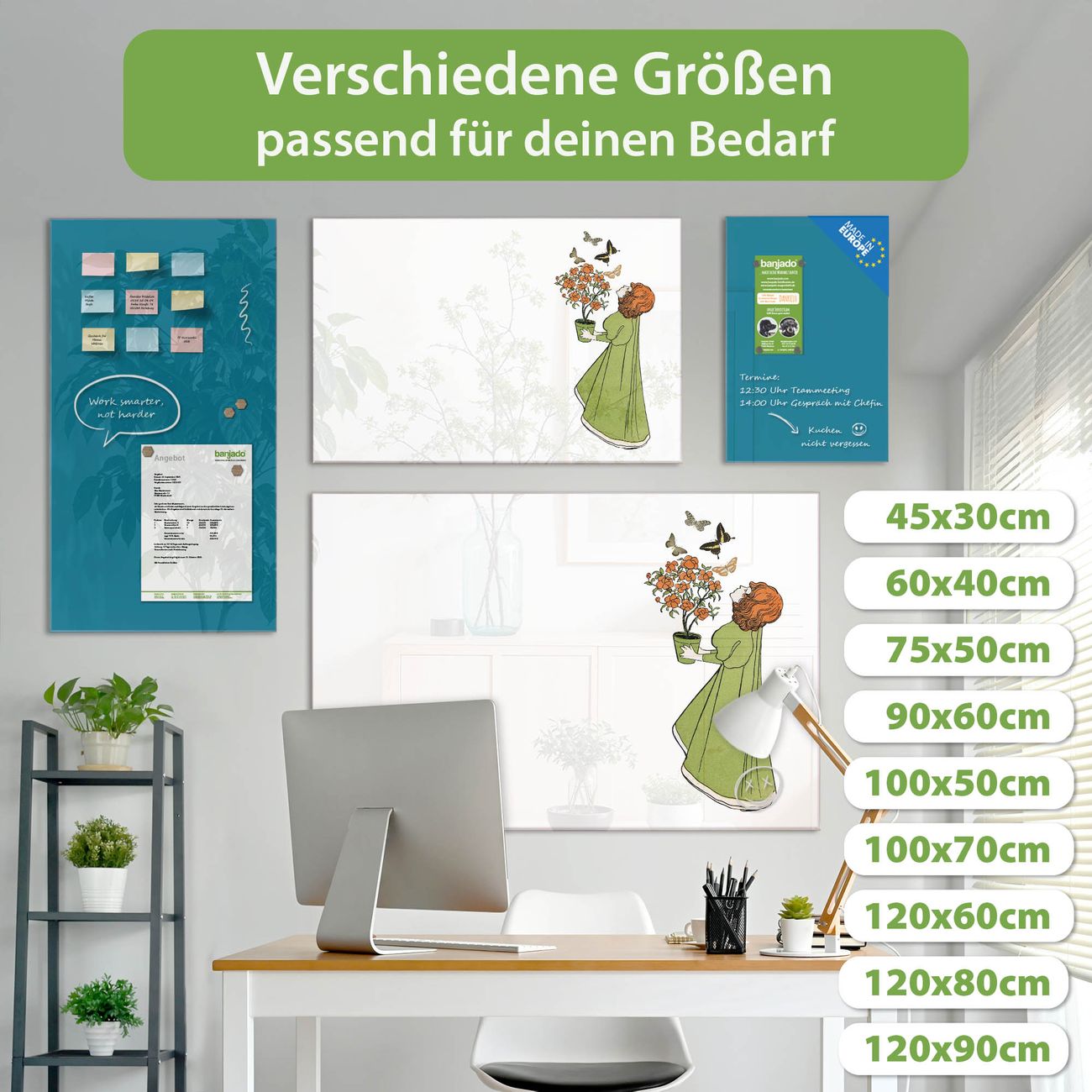 Jede Glas Magnettafel wird in unserer Werkstatt von Hand gefertigt und sorgfältig geprüft. So erhalten Sie ein echtes Qualitätsprodukt, das Funktion und Ästhetik perfekt vereint.?? Warum banjado?