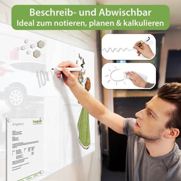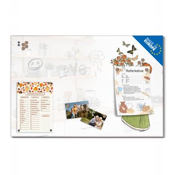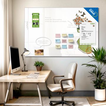 Auf der glatten Glasoberfläche lassen sich Termine, Rezepte oder Notizen ganz einfach mit Kreidestiften festhalten und rückstandslos entfernen. Starke Neodym-Magnete halten Ihre wichtigsten Erinnerungen sicher an Ort und Stelle. So entsteht Ihre ganz persönliche Ideenwand - jeden Tag neu.