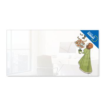 Glas Magnettafel im Querformat Motiv Mädchen mit Blumentopf Vintage